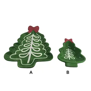 క్రిస్మస్ ట్రీ ప్లేట్ హ్యాండ్ పెయింటెడ్ హాలిడే గిఫ్ట్‌లో రెండు వెర్షన్లు ఉన్నాయి: వెర్షన్ A (పెద్దది) ప్రధాన కోర్సులు మరియు డెజర్ట్‌లను అందించడానికి అనుకూలంగా ఉంటుంది, అయితే వెర్షన్ B (చిన్నది) చిన్న వంటలను సున్నితంగా అలంకరించడానికి, విభిన్న టేబుల్ అవసరాలను తీర్చడానికి సరైనది. పైభాగం బంగారు నక్షత్రం లేదా ఎరుపు విల్లుతో అలంకరించబడి, చేతితో చిత్రించిన నమూనాలతో జతచేయబడి, ప్రతి వివరాలలోనూ పండుగ స్ఫూర్తిని ప్రదర్శిస్తుంది. ఈ సున్నితమైన మరియు ఆచరణాత్మక టేబుల్వేర్ సెట్ ఖచ్చితంగా మీ క్రిస్మస్ పట్టిక కోసం ఉత్తమ ఎంపిక!