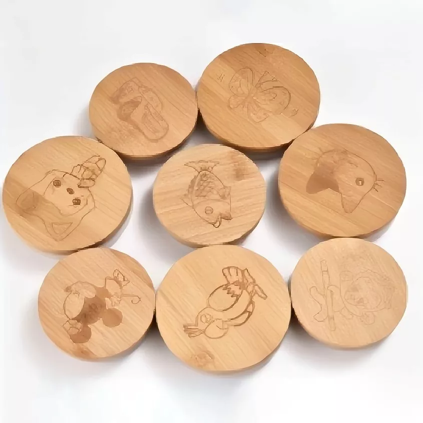 BYF యొక్క కస్టమ్ ఎకో-ఫ్రెండ్లీ చెక్క మూతలు, ప్రత్యేకంగా గాజు జాడి కోసం రూపొందించబడ్డాయి, ఇవి ఆచరణాత్మక మరియు సౌందర్యంగా ఆహ్లాదకరంగా ఉంటాయి. స్పష్టమైన, సహజ ధాన్యంతో లేత-రంగు సహజ కలప నుండి తయారవుతుంది, అవి స్పర్శకు మృదువుగా మరియు సుఖంగా ఉంటాయి. మేము రెండు డిజైన్ ఎంపికలను అందిస్తున్నాము: శక్తివంతమైన రంగులు మరియు స్పష్టమైన వివరాల కోసం హై-డెఫినిషన్ ప్రింటింగ్ మరియు శుద్ధి చేసిన ఆకృతి మరియు సొగసైన పంక్తుల కోసం లేజర్ చెక్కడం. మేము చిన్న జంతువులు మరియు సంఖ్యలు వంటి సరదా డిజైన్లతో సహా విస్తృత డిజైన్లను అందిస్తున్నాము, ప్రతి ఒక్కటి చేతితో తయారు చేసిన వివరాలు మరియు కళాత్మక ఫ్లెయిర్ యొక్క స్పర్శతో నిండి ఉన్నాయి.