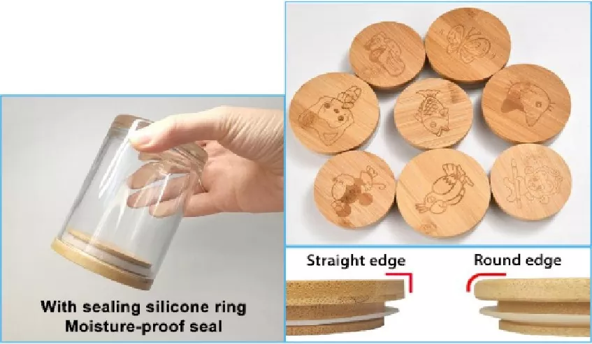 మూతలు ఆలోచనాత్మకంగా రూపొందించిన అంచులను కలిగి ఉంటాయి, ప్రతి రుచికి అనుగుణంగా సరళ లేదా గుండ్రని రిమ్‌లలో లభిస్తాయి. గుండ్రని అంచు సున్నితమైనది మరియు తక్కువ గీతలు, అయితే స్ట్రెయిట్ ఎడ్జ్ క్లీనర్, మరింత క్రమబద్ధీకరించిన రూపాన్ని అందిస్తుంది. మూతలు తేమ మరియు ధూళి నుండి రక్షించడానికి ఫుడ్-గ్రేడ్ సిలికాన్ ముద్రతో అమర్చబడి ఉంటాయి, కూజాలోని విషయాలను తాజాగా మరియు పొడిగా ఉంచుతాయి. మీరు కొవ్వొత్తులు, కాఫీ బీన్స్, టీ ఆకులు లేదా జామ్ నిల్వ చేస్తున్నా, ఈ మూతలు ఆచరణాత్మక ఉపకరణాలు మరియు అధునాతన స్పర్శ రెండింటికీ సరైనవి.