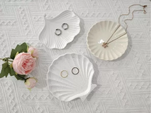 షెల్ మరియు స్టార్ ఫిష్ సిరామిక్ ఆభరణాల ట్రే కూడా ఆలోచనాత్మకమైన బహుమతిని ఇస్తుంది: సున్నితమైన పెట్టెలో నిక్షిప్తం చేయబడినది, ఇది సున్నితమైన సముద్రపు గాలిలా అనిపిస్తుంది, ఒకరి హృదయానికి శాంతి మరియు ఆనందాన్ని తెస్తుంది. ఇది ఆభరణాలకు ఒక స్వర్గధామం మాత్రమే కాదు, ఆత్మకు స్వర్గధామం. ప్రతి స్పర్శ సముద్రంతో నిశ్శబ్ద సంభాషణ లాంటిది, ఆలోచనలు సుదూర మరియు మర్మమైన ప్రదేశానికి వెళ్ళడానికి అనుమతిస్తాయి.