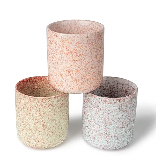మూడు-రంగుల సిరీస్ సిరామిక్ కొవ్వొత్తి హోల్డర్లు భూమి యొక్క విభిన్న రంగులు మరియు సహజ ప్రకృతి దృశ్యాల నుండి ప్రేరణ పొందాయి. మూడు రంగుల తెలివైన మిశ్రమం భూమి యొక్క శక్తివంతమైన అందాన్ని స్పష్టంగా సంగ్రహిస్తుంది, ఇది ప్రకృతి యొక్క శ్వాస మరియు మనోజ్ఞతను ముంచెత్తడానికి మిమ్మల్ని అనుమతిస్తుంది. అధిక-నాణ్యత సిరామిక్ నుండి తయారైన వారు సున్నితమైన ఆకృతిని, మృదువైన అనుభూతి, అద్భుతమైన ఉష్ణ నిరోధకత మరియు స్థిరత్వాన్ని అందిస్తారు, వారి అందాన్ని కొనసాగిస్తూ మరియు దుస్తులు ధరించేటప్పుడు సురక్షితమైన కొవ్వొత్తి దహనం చేసేలా చేస్తుంది. మూడు సింబాలిక్ రంగుల యొక్క తెలివైన కలయిక, బహుశా భూమి యొక్క భూమి, సముద్రం మరియు ఆకాశాన్ని సూచిస్తుంది, కళాత్మక నైపుణ్యం మరియు దృశ్య ప్రభావంతో ప్రేరేపించబడిన ఒక శక్తివంతమైన మరియు శ్రావ్యమైన పాలెట్‌ను సృష్టిస్తుంది, ఇది మీ ఇంటికి వ్యక్తిత్వం మరియు మనోజ్ఞతను కలిగిస్తుంది.